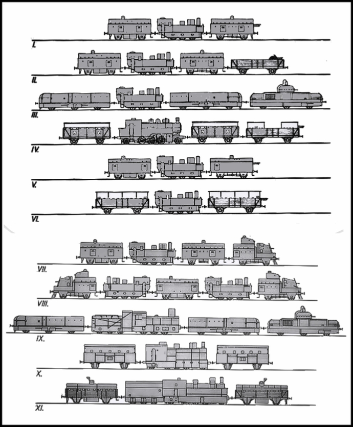 Twelve Austro-Hungarian Type B PZ Armored Train Configurations