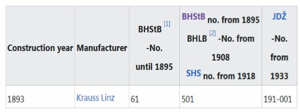 In the 1940s, the locomotive, which was designated 191-001 by the Yugoslav State Railways JDŽ, was discarded.