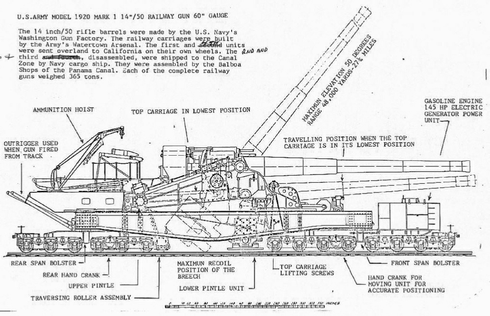 (U.S. Navy 14"/50 caliber M1920 railway gun on M1920 Carriage)