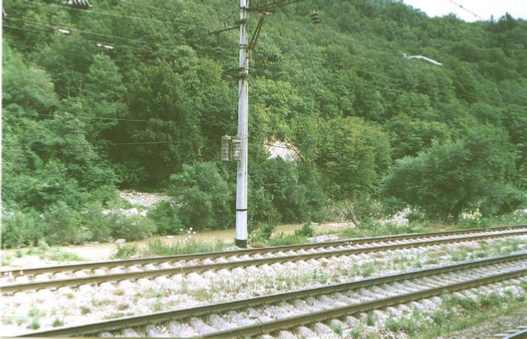The exit is located in a very picturesque place: here the Tuapse valley narrows a lot, and there was barely enough space for the paths. As you can see in the photo on the left, in some places the cliff into the seething water stream starts almost from the edges of the sleepers! The station building itself, as you can see, has no architectural value. Tuapse in the Tuapse valley was almost completely destroyed by German aircraft in 1942-