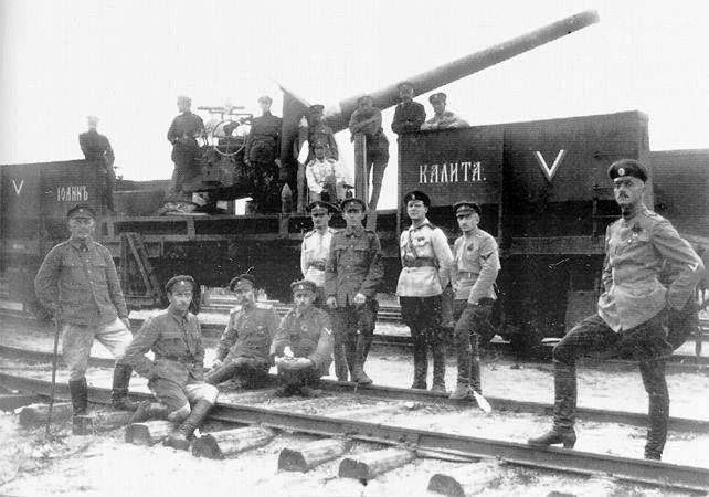"United Russia" and "Ivan Kalita" Armored trains where both armed with the same type of heavy naval guns.